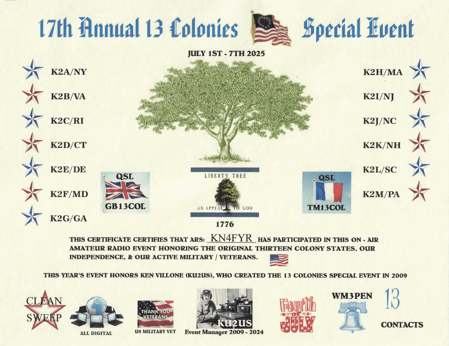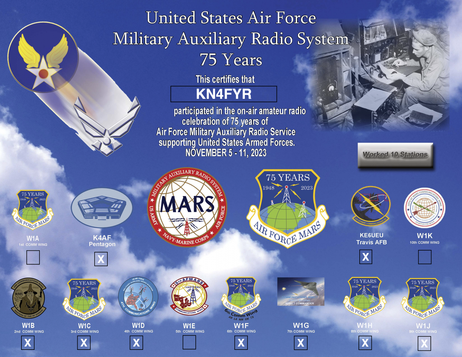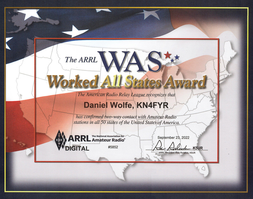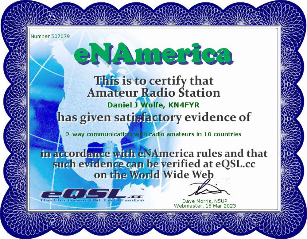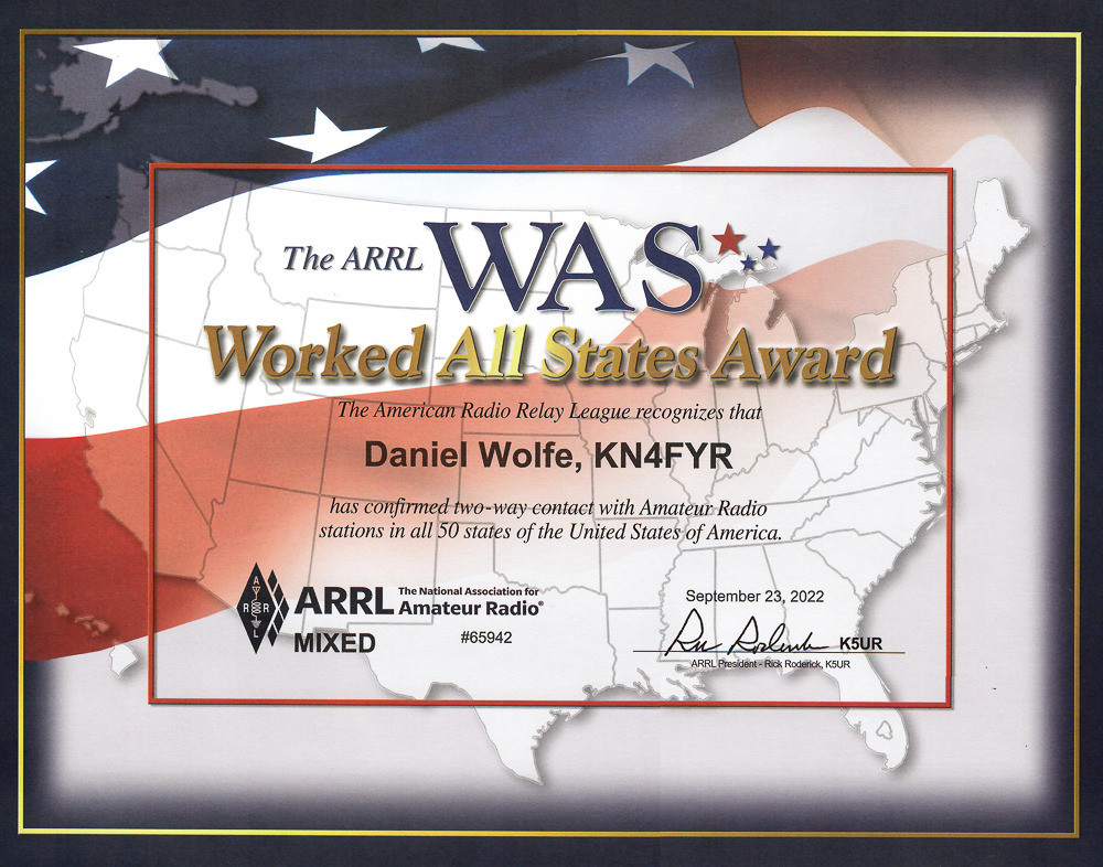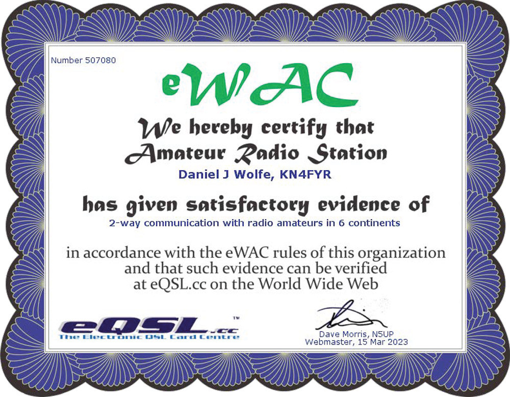 A few of these awards are meaningful, like the ARISS SSTV Award, the ARRL Worked All States Awards, and the 13 Colonies Special Event Certificates. All of the others are created from automated station logs and I really didn’t do anything special to earn those. But they’re still pretty, so why not?